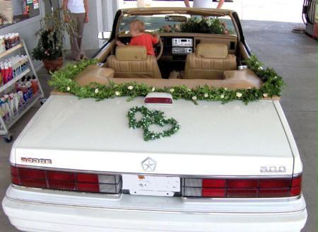 Auf den Bildern wurde der Chrysler für eine Silberhochzeit geschmückt. | |